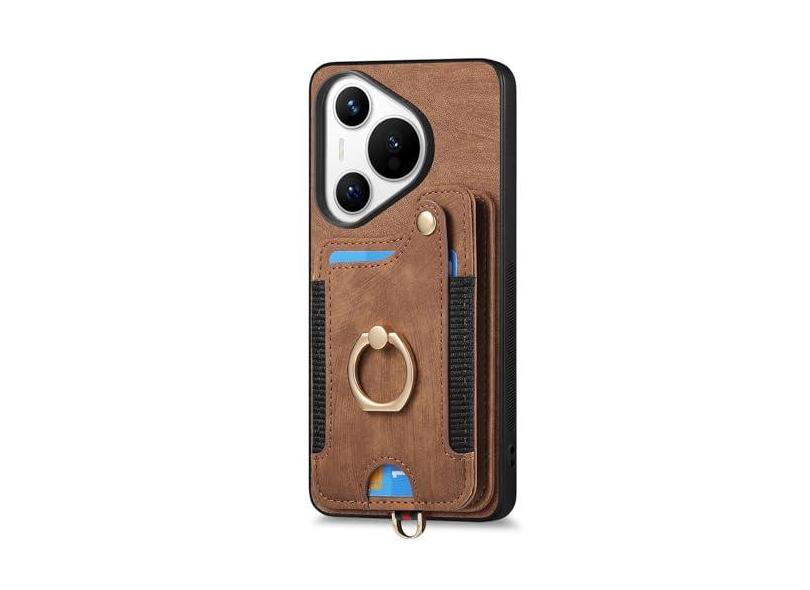 HAO RIYLN Capa carteira de couro para Huawei Pura 70 Ultra/70 Pro/70 Pro+/70, capa de telefone fina com fecho magnético com bloqueio de RFID, capa de sucção magnética montada no carro, marrom, 70