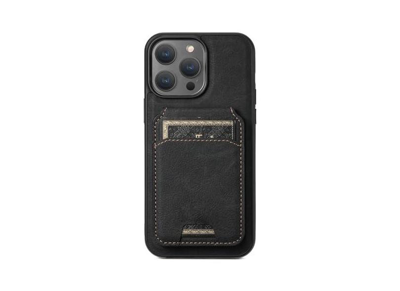 HAO RIYLN Capa carteira para iPhone 15 Pro Max/15 Pro/15 Plus/15, capa de carregamento sem fio de adsorção magnética de couro PU com suporte para cartão, preto 2,15 Pro