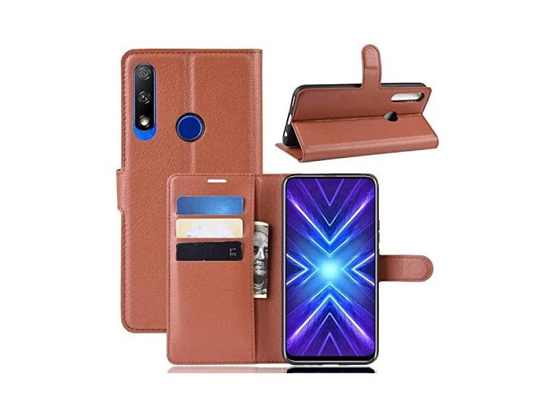 HONGYAN Capa de telefone Para Huawei Honor 9x Versão de impressão digital Litchi Texture Flip Leather Case com carteira e suporte e slots de cartão Capa protetora