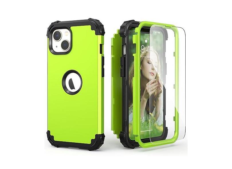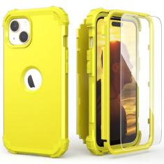 IDweel Capa para iPhone 15 com protetor de tela, luxuosa 3 em 1 à prova de choque slim fit híbrido proteção resistente com glitter capa rígida de policarbonato macio bumper capa de corpo inteiro,