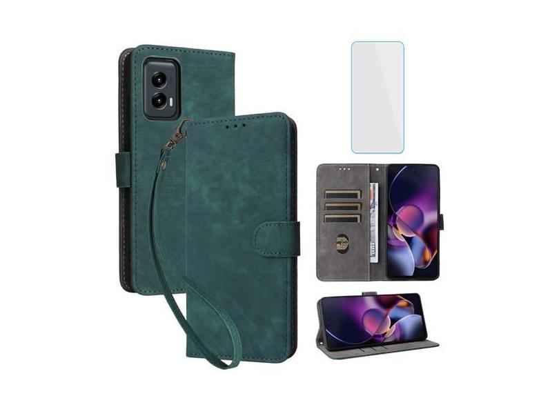 IUQXU Capa carteira para celular Motorola Moto-G-Stylus-5G-2024 com protetor de tela [bloqueio RFID] Suporte de cartão com suporte para homens e mulheres capa de celular para Moto GStylus 5G 2024