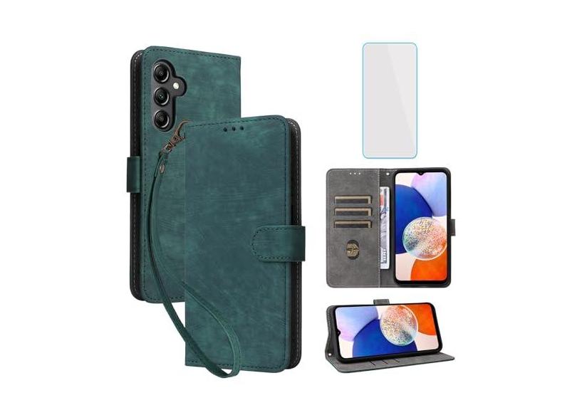 IUQXU Capa carteira para celular Samsung Galaxy A15 5G com protetor de tela [bloqueio RFID] suporte de cartão de couro com suporte para celular feminino para Galaxy 15A 5G A15 SM-A156U Samsung A 15 G5