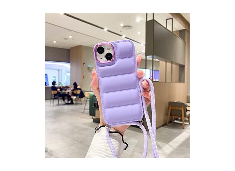 Jaqueta de baixo para baixo colar tiracolo cordão estojo macio para iPhone 13 14 Pro Max 12 11 X XR 7 8 Plus 14Plus Armor capa à prova de choque, roxo, para iPhone 12 ProMax