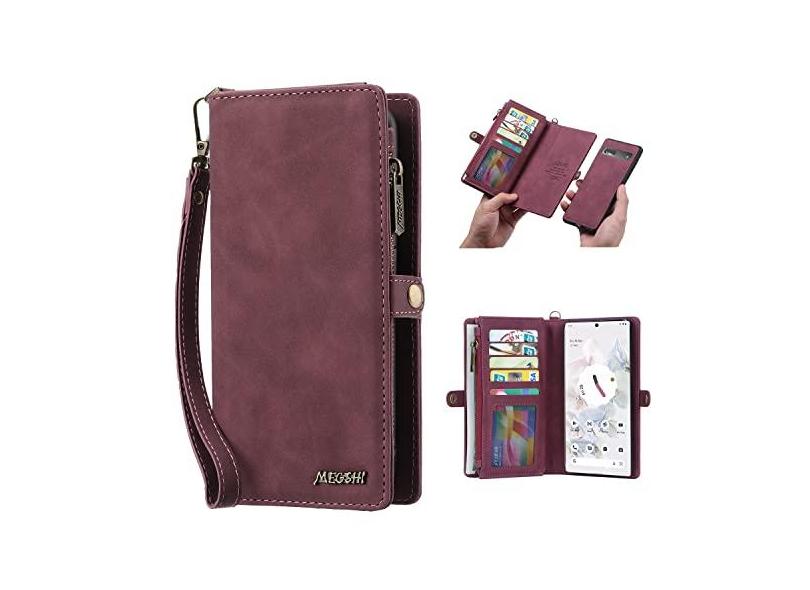 JINGANGYU JGY Capa carteira para Googel Pixel 7A couro PU bolso com zíper capa magnética destacável com suporte 8 porta-cartões alça de mão Pixel 7A carteira flip para mulheres e homens (Pixel 7A,