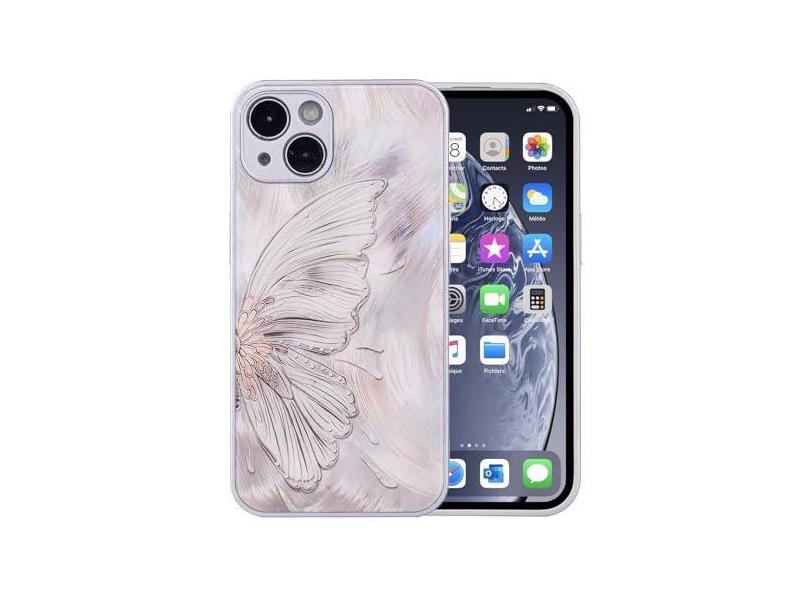 JKLASD Compatível com iPhone 14, linda capa de telefone floral de borboleta feminina para mulheres meninas adolescentes capa protetora à prova de choque de vidro brilhante para iPhone