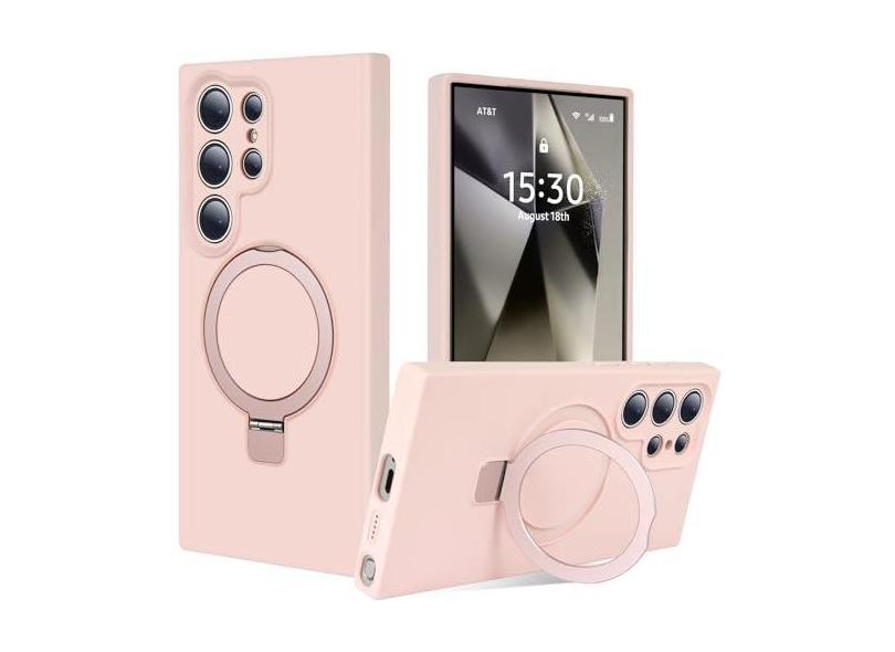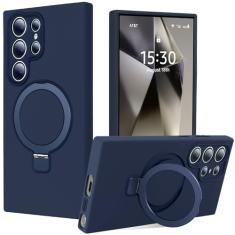 Jockvo Capa de telefone com suporte magnético invisível para Samsung Galaxy S24 Ultra de 6,8 polegadas, silicone compatível com proteção total de câmera de grau militar Magsafe, capas de telefone para