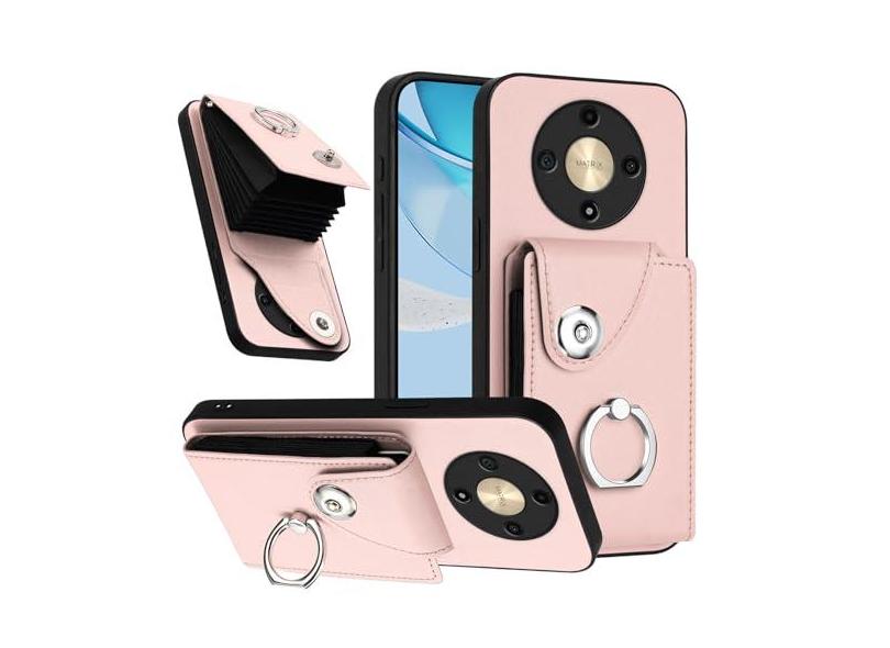 Kainevy Capa carteira para Honor Magic 6 Lite de couro fofa Honor Magic 6 Lite com suporte para cartão e anel de suporte, fecho magnético, capa protetora resistente à prova de choque de silicone e