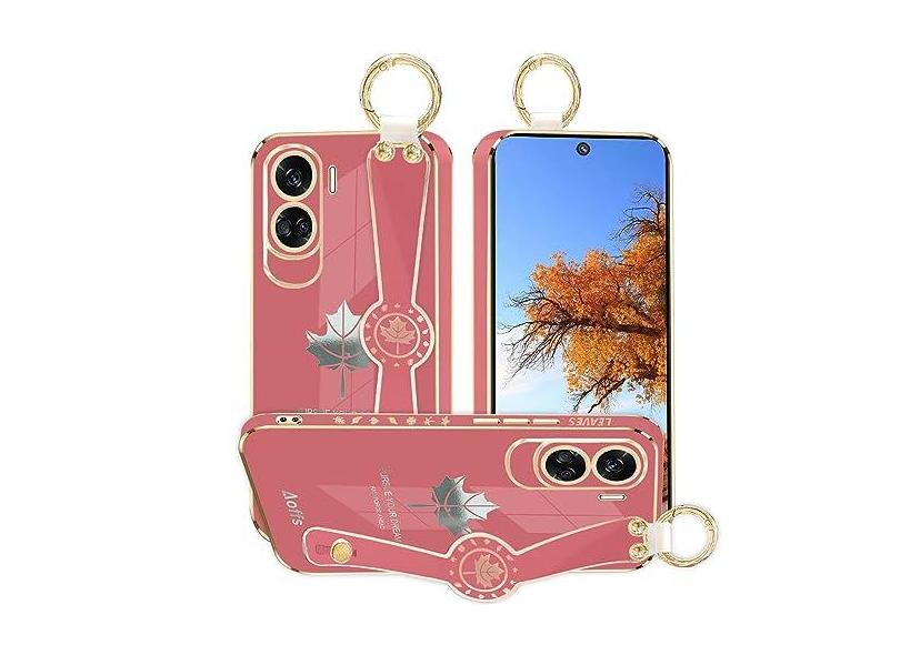 Kainevy Capa de telefone para Honor 90 Lite capa estética de silicone à prova de choque para mulheres capa protetora Honor 90 Lite capa de telefone fina com anel de pulso design padrão de folha de