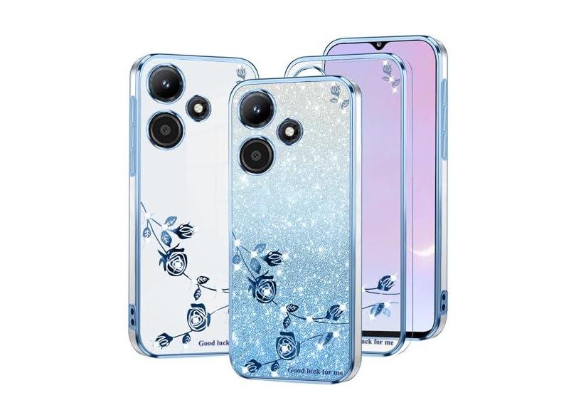 Kainevy Capa Infinix Hot 30i com glitter para mulheres meninas rosa floral transparente protetor à prova de choque Infinix Hot 30i capa de telefone luxuosa diamante brilhante linda capa de telefone