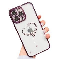 KERZZIL Capa de celular brilhante com coração brilhante compatível com iPhone 13 Pro Max, capas de telefone femininas fofas brilhantes com protetor de câmera completa, capa de telefone feminina