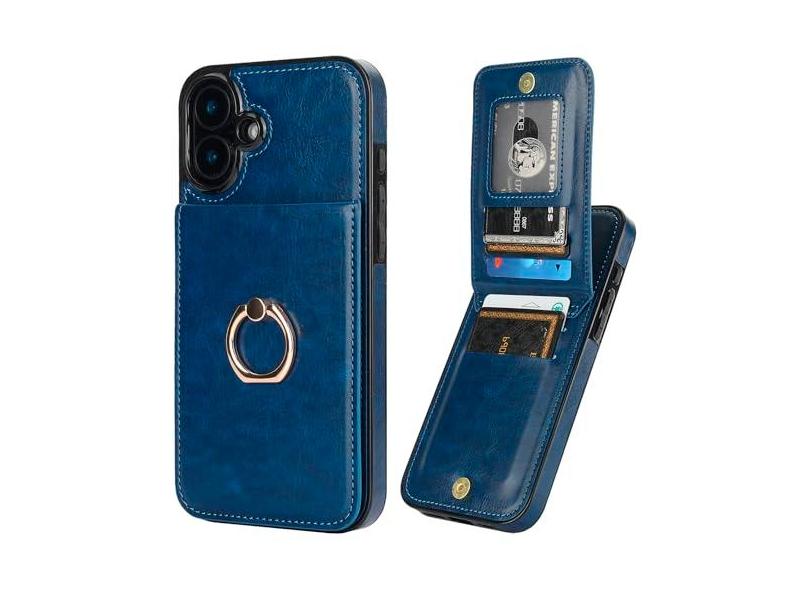 KIHUWEY Capa carteira para iPhone 16 Plus com suporte para cartão de crédito, anel de rotação de 360° couro PU fecho magnético suporte capa protetora resistente para mulheres e homens 6,7 polegadas
