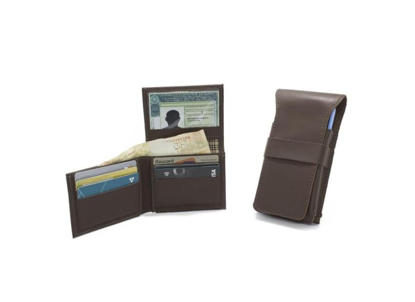 Kit Bainha Capa Protetora Passador Para Cinto e Carteira Em L Couro Cartao Documentos-Masculino