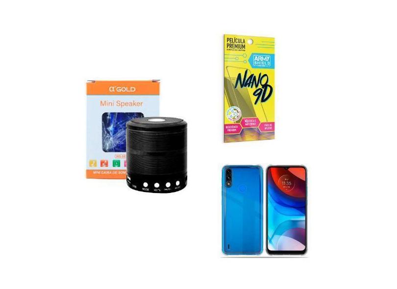 Kit Caixa de Som Bluetooth + Capinha Motorola E7 Power + Película 9D -
