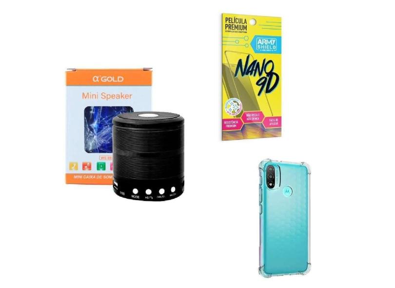Kit caixa de som + capinha motorola e20 + película 9d