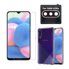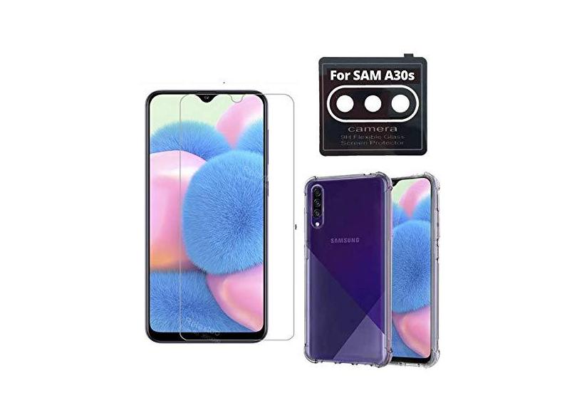 Kit Capa Anti Queda Compatível Samsung Galaxy A30s + Película Comum Vidro + Película Nano Flexível Câmera