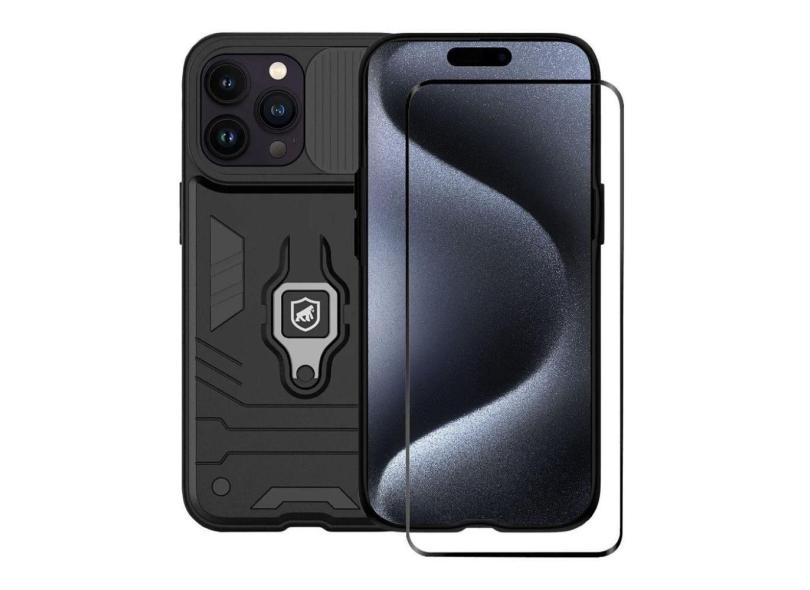 Kit Capa Defender E Pelicula Coverage 5d Pro Preta Para Iphone 15 Pro Max - Gshield
