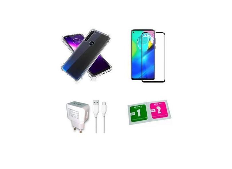 Kit Capa Reforçada Moto G8 Power + Pel 3D + Carregador Turbo - Yellow