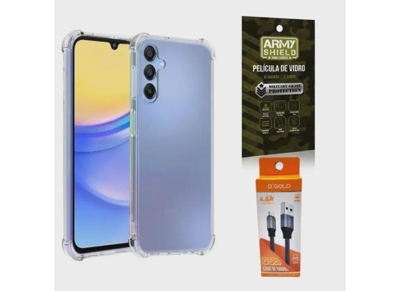 O menor preço encontrado no Brasil para Kit Capinha AntiShock p/ Galaxy A35 + Cabo Tipo-C + Pelicula 3D - ArmyShield atualmente é R$ 39,90.