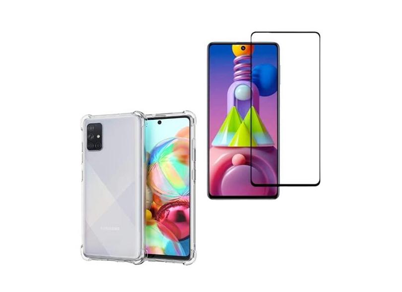 Kit Capinha Celular Antichoque Compatível Samsung Galaxy M51 + 2 Películas Vidro 3D Cobre Toda Tela