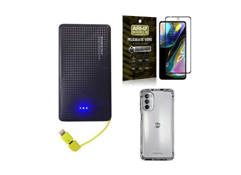 Kit Capinha Moto G82 + Carregador Portátil 5K + Película 3D - Armyshie