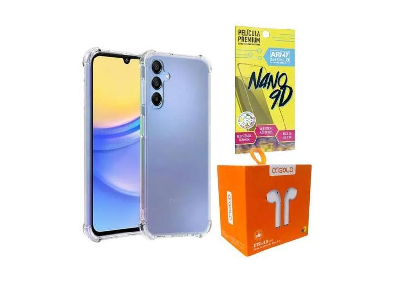 Kit Capinha Para Galaxy A15 + Fone Bluetooth + Pelicula 9D - Armyshiel