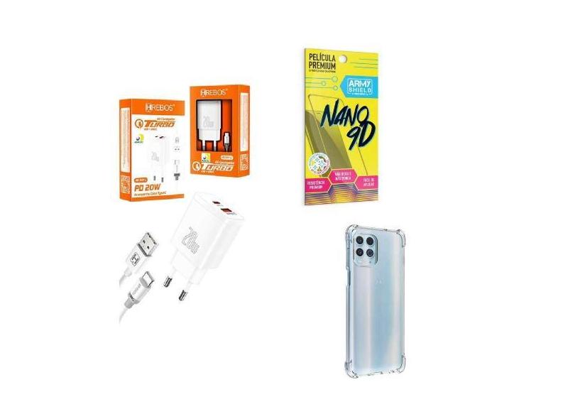 Kit Carregador Turbo 20W + Capa Motorola G100 + Película 9D - Hrebos