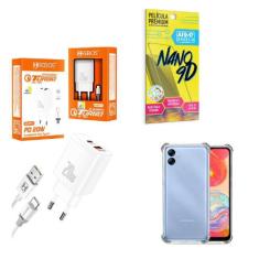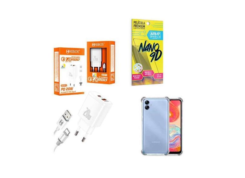 Kit Carregador Turbo 20W + Capinha Samsung A04 E + Película de Cerâmic
