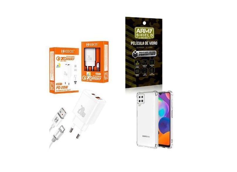 Kit Carregador Turbo 20W + Capinha Samsung A12 + Película De Vidro 3D