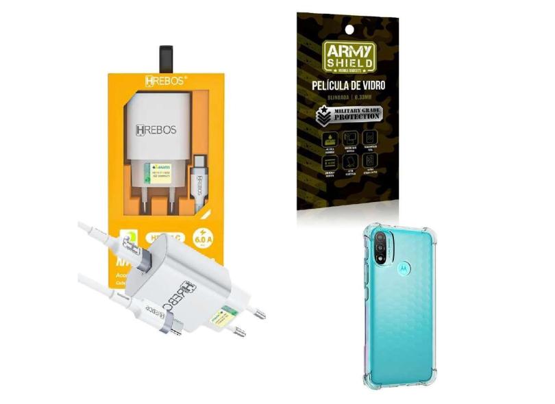 Kit Carregador Turbo + Capinha Motorola E20 + Película 3D