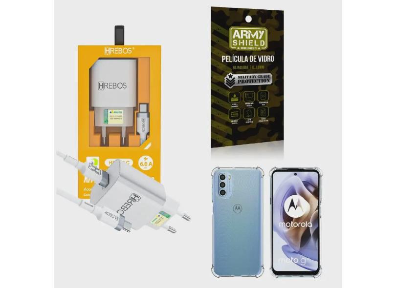 Kit Carregador Turbo + Capinha Motorola G31 + Película 3D