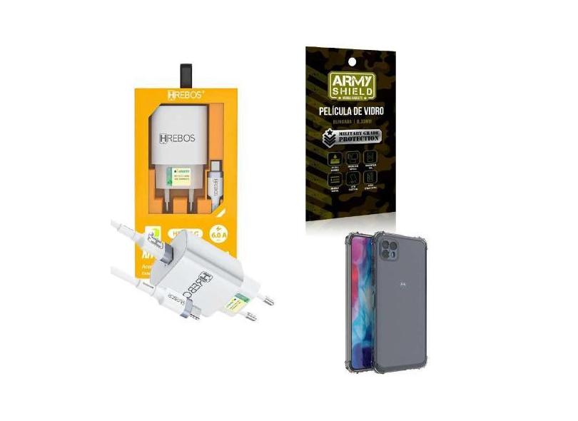 Kit Carregador Turbo + Capinha Motorola G50 5G + Película 3D - Hrebos