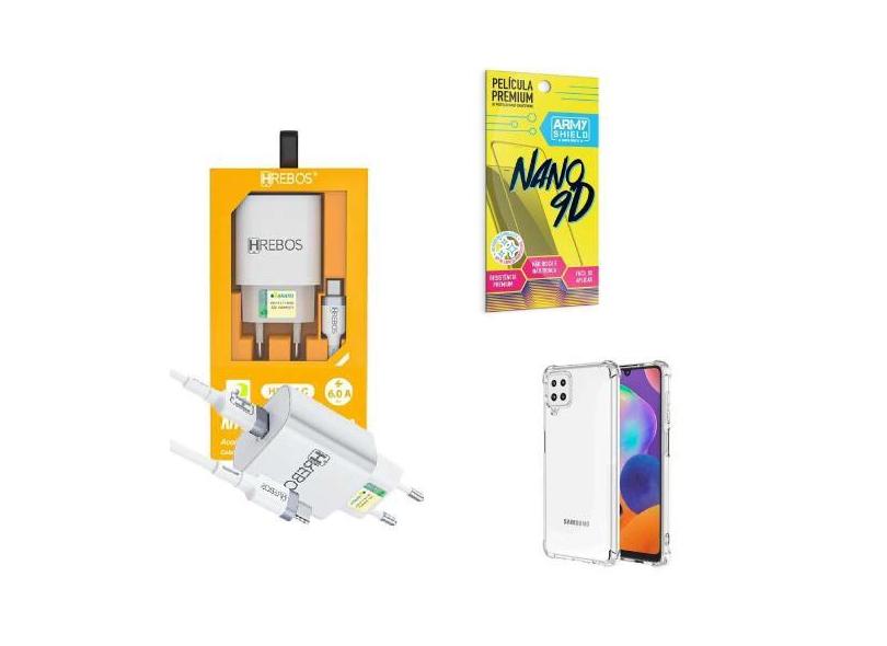 Kit Carregador Turbo + Capinha Samsung M62 + Película 9D - Hrebos
