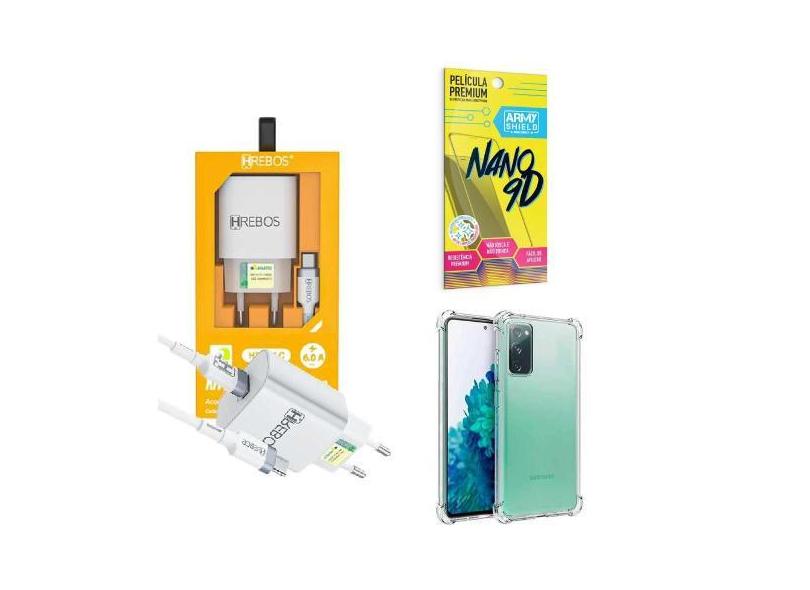 Kit Carregador Turbo + Capinha Samsung S20 Fe + Película 9D - Hrebos