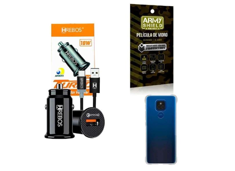 Kit Carregador Veicular + Capa Motorola E7Plus + Película 3D