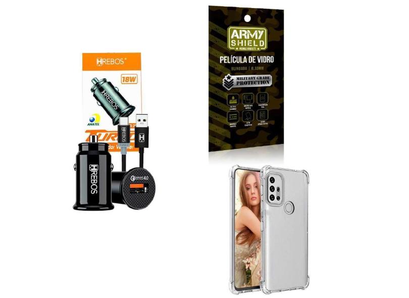 Kit Carregador Veicular + Capinha Motorola G30 + Película 3D