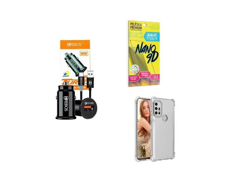Kit Carregador Veicular + Capinha Motorola G30 + Película 9D - Hrebos