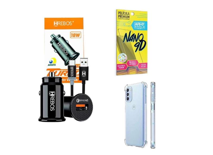 Kit Carregador Veicular + Capinha Motorola G41 + Película 9D