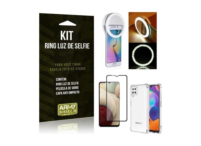 Kit Flash Ring Galaxy A12 Flash Ring + Capa Anti Impacto + Película de