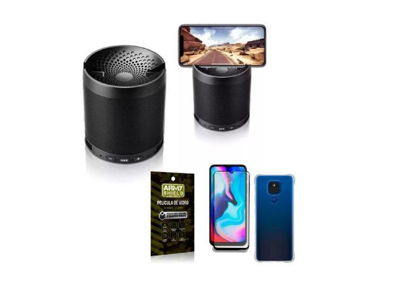 Kit Moto E7 Plus Som Bluetooth Potente Q3 + Capinha + Película 3D - Ar