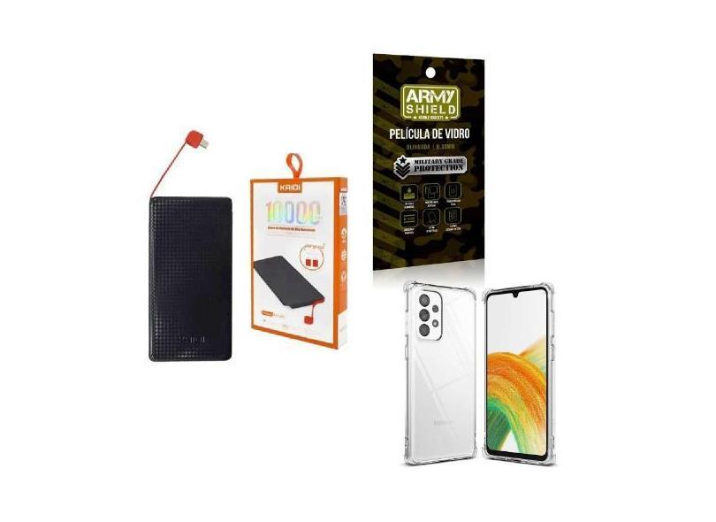 Kit Power Bank 10.000Mah + Capinha Samsung A33 + Película 3D - Armyshi