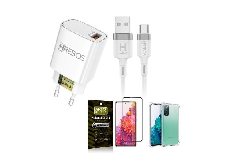 Kit Samsung S20 FE Carregador Turbo HS183 + Capinha + Película 3D - Ar