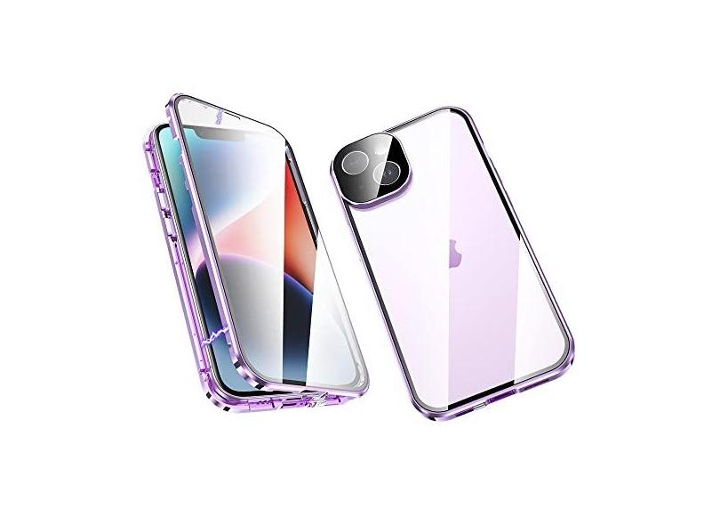 ksscaly Capa para iPhone 14 (6,1 polegadas), amortecedor de metal de adsorção magnética, proteção total de 360 graus, proteção frontal e traseira, vidro temperado com trava de segurança para iPhone 14