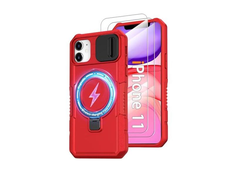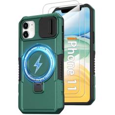 KTUOHU Capa de celular para iPhone 11, com suporte de anel magnético [2 protetores de tela de vidro] [compatível com MagSafe] Capa de grau militar com capa para câmera, capa à prova de choque para