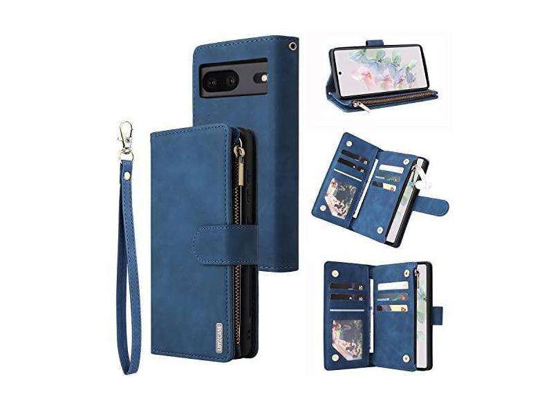 LBYZCASE Capa para Google Pixel 7 PRO-5G 2022 com suporte para cartão [bloqueio RFID], capa de telefone de luxo com zíper de couro flip com zíper e alça de pulso suporte para mulheres e homens capa de