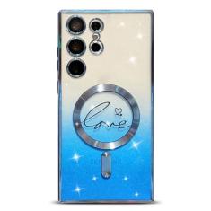 Lcenbk Capa magnética compatível com MagSafe Samsung Galaxy S24 Ultra 5 g Luxuosa Bling Gradiente Glitter Clear Plated Love Hearts Cover com protetor de câmera amortecedor macio à prova de choque