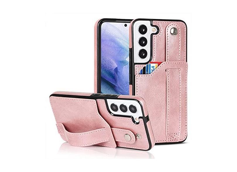 LCSMFKJ Capa carteira para celular Samsung Galaxy S22 Plus com alça de pulso ajustável, suporte de couro PU, slot para cartão de crédito, à prova de choque, híbrida, resistente, capa protetora para