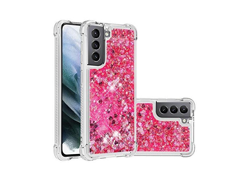 LEMAXELERS Compatível com Galaxy S21 5G, capa transparente líquida com glitter flutuante areia movediça à prova de choque capa protetora de silicone macio TPU para Samsung Galaxy S21 5G. YBL Love Rose