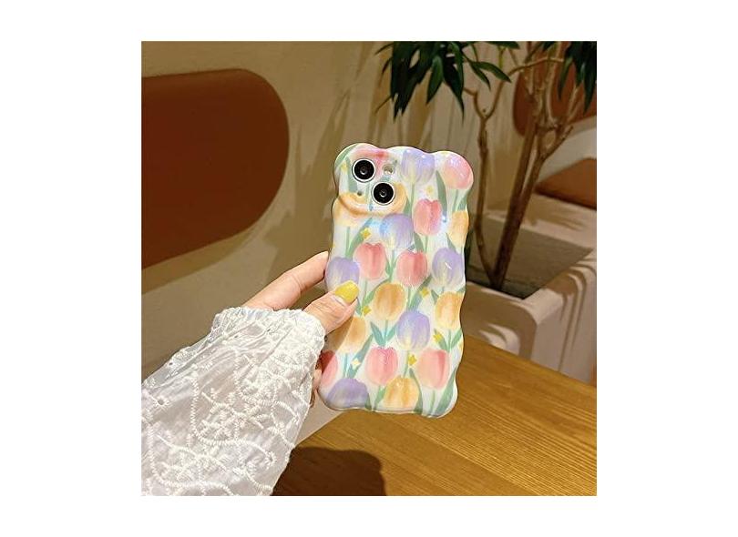 Lente da câmera onda bolha pintura a óleo floral tulipa capa de telefone para iphone 14 13 12 11 pro max capa de silicone macio, a1, para iphone 14promax
