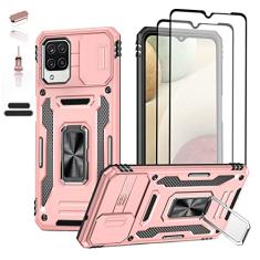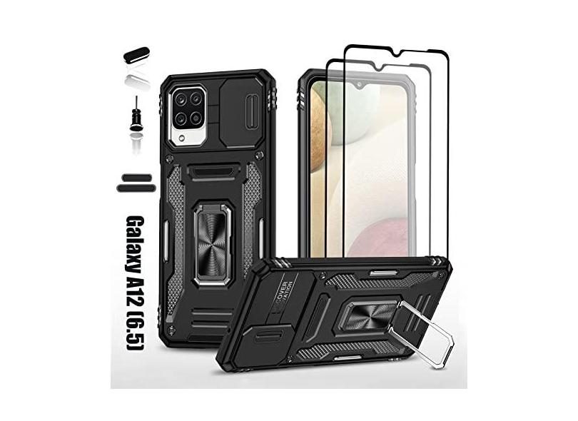 LMDAMZ Capa resistente para Samsung Galaxy A12 (5G), camada dupla híbrida de camada militar, protetor de amortecedor de borracha com protetor de câmera deslizante, suporte giratório de 360 graus
