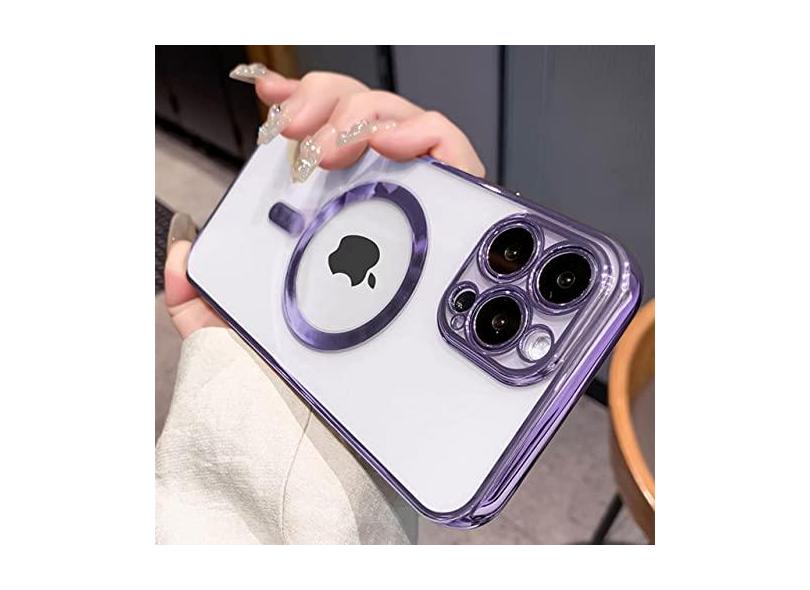 Luxo chapeamento claro magnético caso de carga sem fio para iphone 14 13 12 11 pro max x xr xs 8 plus capa de silicone macio, roxo, para iphone 8
